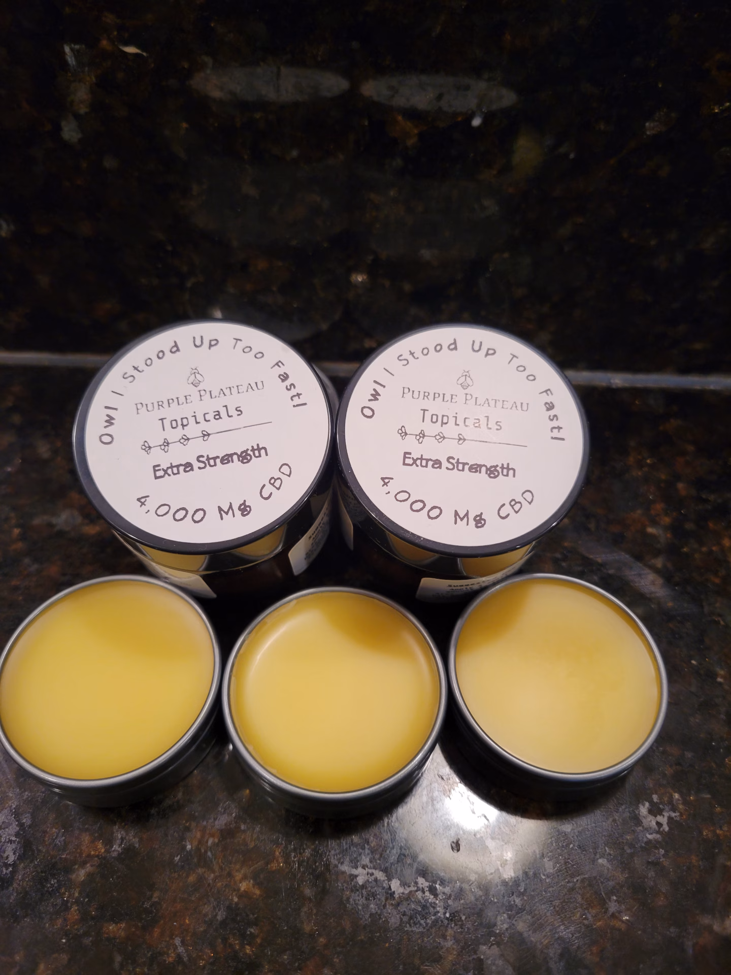 Try our simple salve for all those aches and pains life throws your way. Perfect for sore arthritic hands or worn out shoulders. Made with simple ingredients to try to be as friendly as possible to those with sensitive skin. The relief comes from the 4,000 mg of CBD isolate per a jar of salve giving you maximum relief, unlike some of the other companies that try to sell you on a 300 mg jar of the same size.